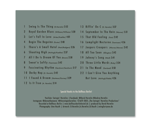 CD – Und jetzt auch das noch: Wir haben einen neuen Chef. Der Vater wurde vom Sohn entmachtet. Immerhin durfte der bei den Aufnahmen für unser neues Album „Swing Is The Thing“ noch am Klavier sitzen.